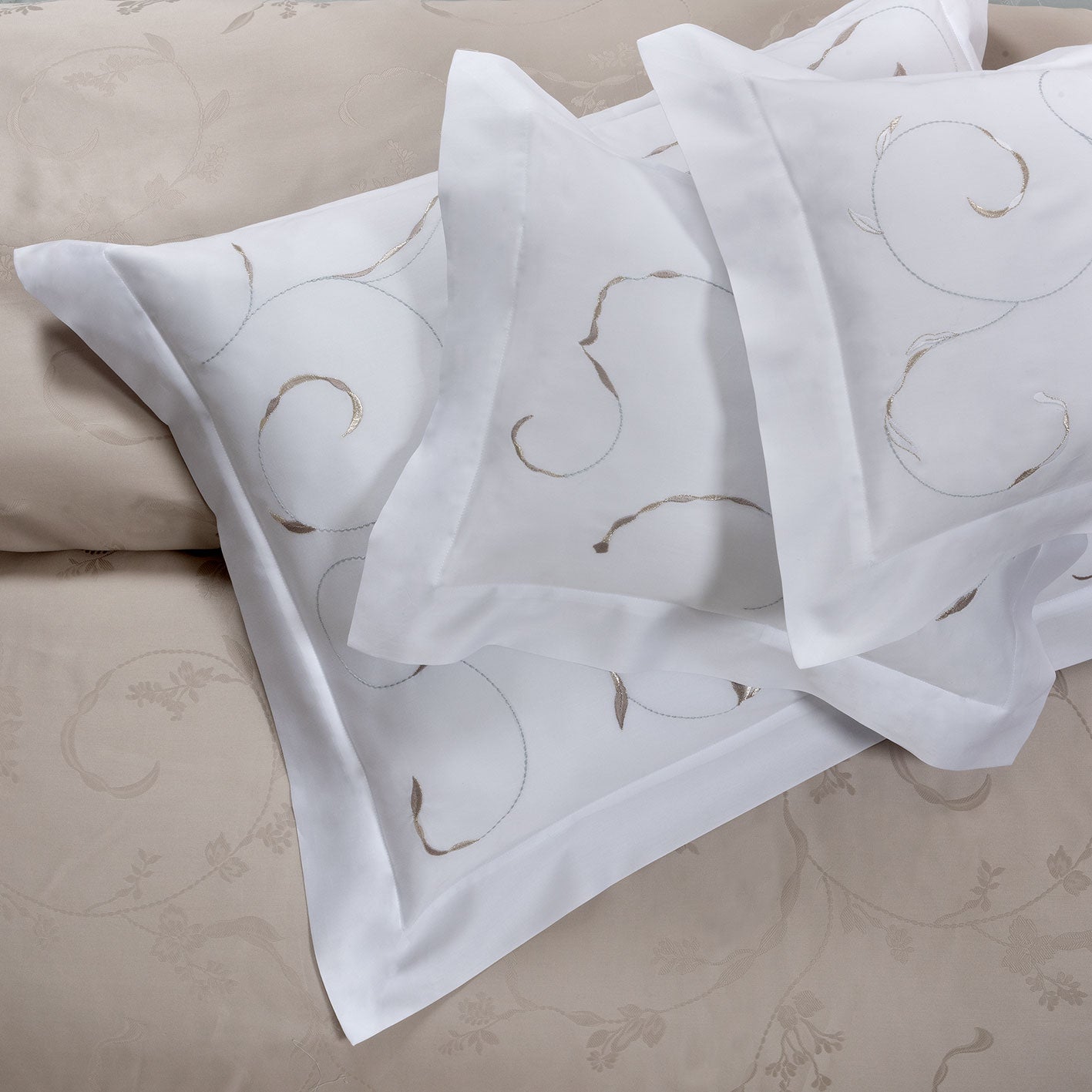 Completo Copripiumino in Raso di Cotone 600TC con Tre Bacchette Ricamate - Sforza