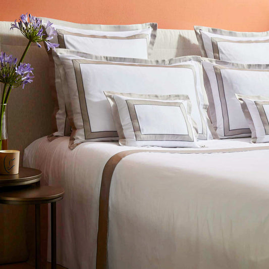 Completo Lenzuola in Raso di Cotone 600TC con Applicazioni in Raso a Contrasto - Pure
