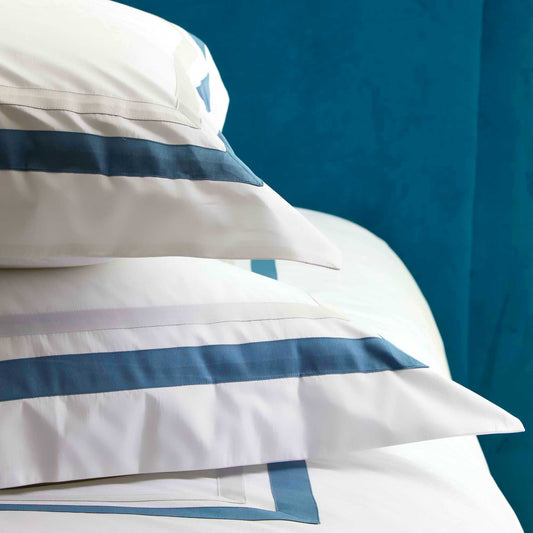 Completo Lenzuola in Percalle di Cotone 400TC con Applicazioni in Raso a Contrasto - Pure