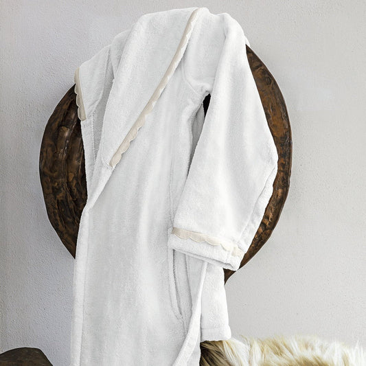 Accappatoio in Spugna di Cotone con Collo a Scialle e Macramè Smerlato - Castello