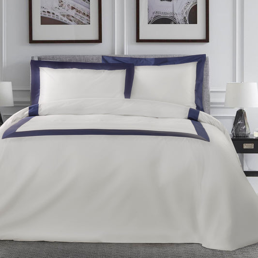 600TC Cotton Satin Duvet Cover Set with Colored Border - Della Scala