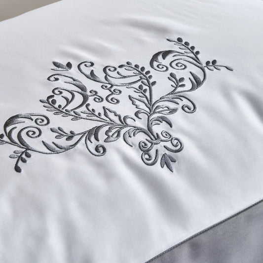 Duvet Cover Set in 300TC Cotton Satin with Embroidered Arabesque - Serenissima